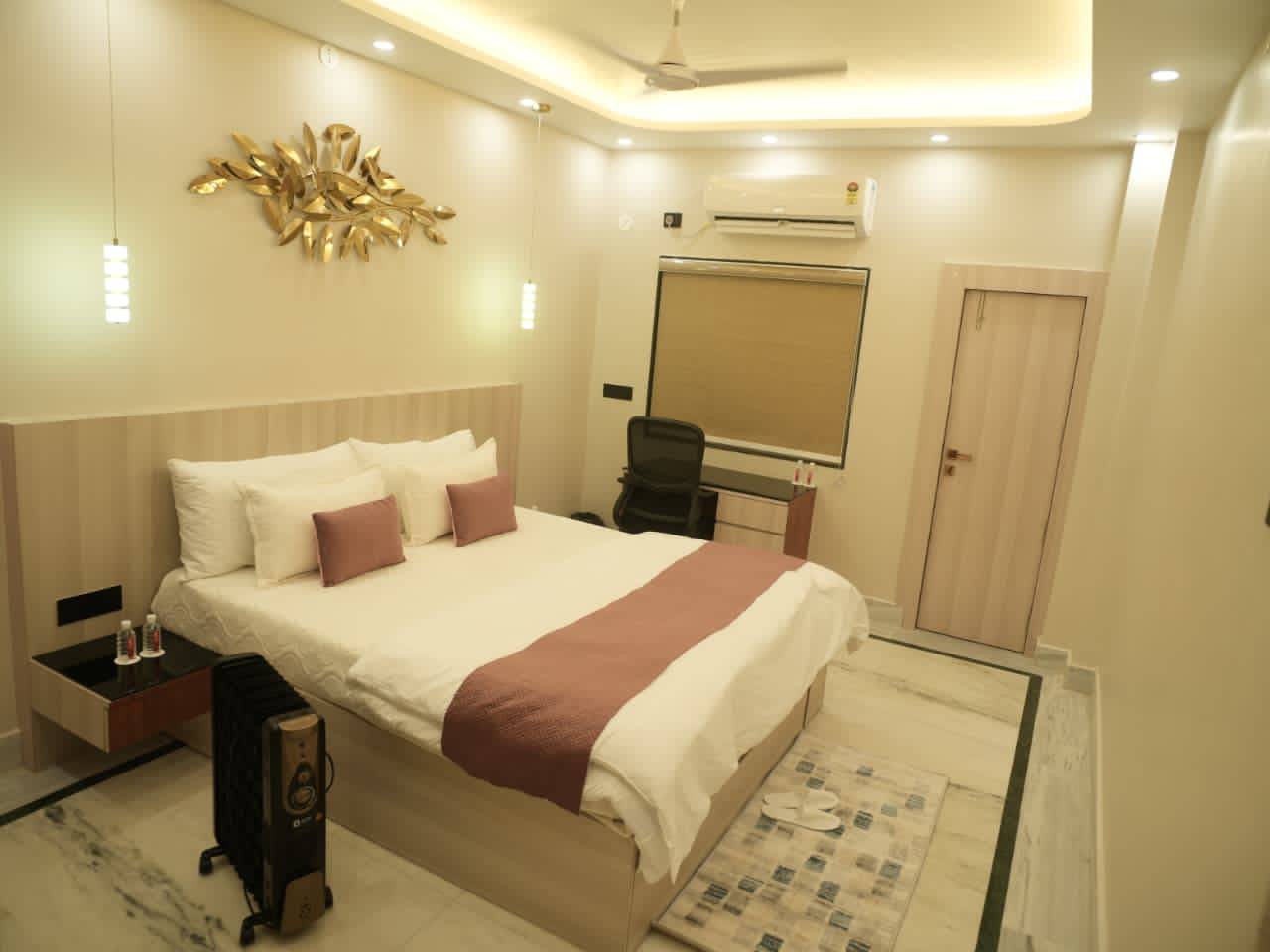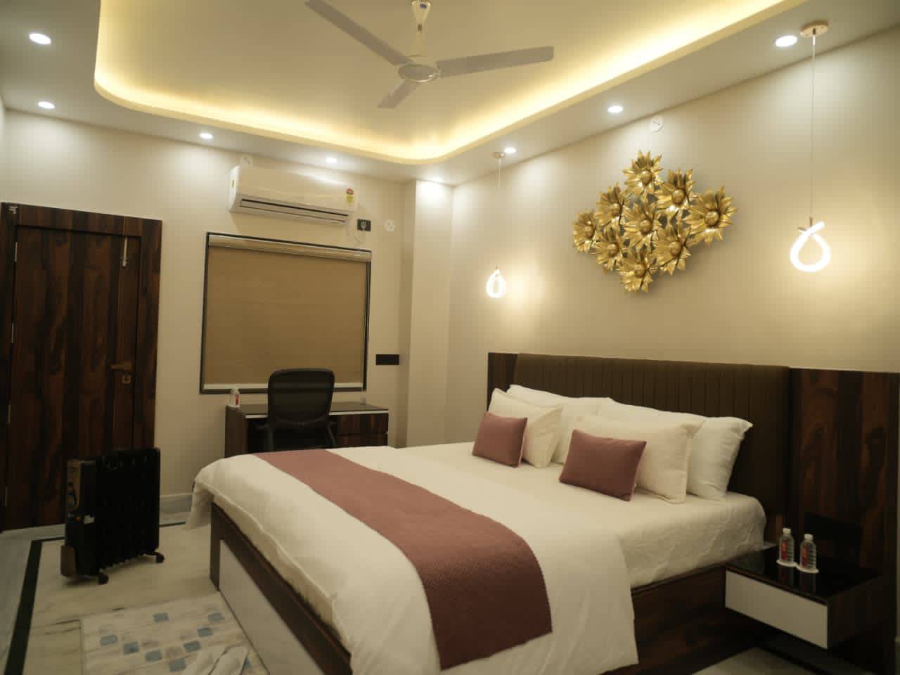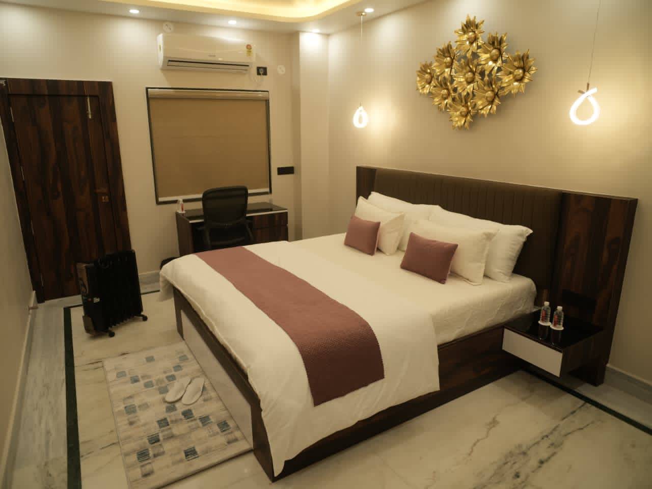 The Super Deluxe King Bedroom is designed for guests seeking extra space and enhanced comfort. Featuring a plush king-size bed, this room offers a relaxing and elegant ambiance, ideal for couples and premium travelers. Thoughtfully furnished and well-lit, it ensures a restful stay with a perfect balance of comfort and style.